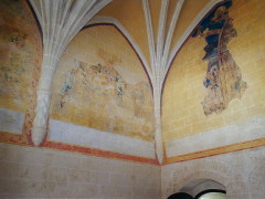 Restitution de la voûte peinte, des nervures en fausse-pierre, des frises décoratives et du faux-appareil jaune et gris des murs (2001).